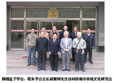 2、2008年(nian)4月3日(ri)至4日(ri),韓(han)國同德(de)女子大學(xue)名(ming)譽教授、韓(han)國孟子學(xue)會(hui)會(hui)長(chang)、韓(han)國程朱學(xue)會(hui)會(hui)長(chang)趙駿河先生對濟南市傳統(tong)文化研究會(hui)進行了為期(qi)兩(liang)天的訪問。受湯傳忠會(hui)長(chang)委托,車士存秘(mi)書長(chang)、彭耀(yao)光副(fu)秘(mi)書長(chang)盛情(qing)接待(dai)了趙先生。