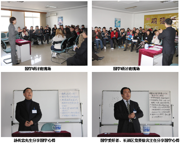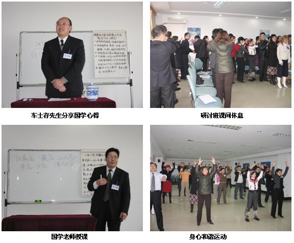 從2007年初至今,組織了完全(quan)免費的(de)國(guo)學(xue)研討(tao)班,聘請專門的(de)國(guo)學(xue)老師與(yu)國(guo)學(xue)愛好者討(tao)論(lun)及交流(liu)傳(chuan)統(tong)文化,平均每(mei)20天一次,目(mu)前,已(yi)組織了近50次,課堂氣氛非常活(huo)躍,大家都(dou)從國(guo)學(xue)文化的(de)精髓中學(xue)到了很多,普遍反映國(guo)學(xue)有(you)利(li)于身心和諧、有(you)利(li)于工作和生活(huo)的(de)健康。