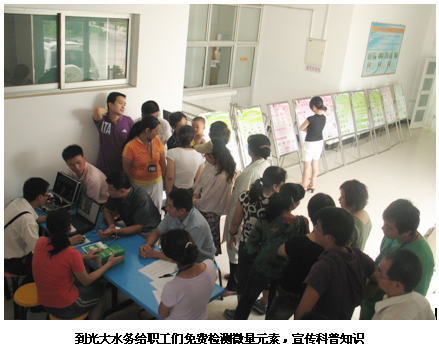 為擴(kuo)大科普宣傳(chuan)范圍,我們(men)(men)走進(jin)企業,為廣大的(de)青壯年(nian)職工們(men)(men)進(jin)行免費的(de)微量元素檢測(ce)。使(shi)正處(chu)于社會棟梁的(de)人才在追(zhui)求事業的(de)同(tong)時(shi)能夠真正關心自己的(de)健(jian)康。