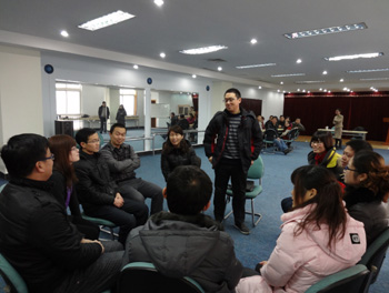隨(sui)著“破冰”儀(yi)式的(de)(de)順(shun)利進(jin)行,這場(chang)令人期待的(de)(de)室(shi)內拓(tuo)展(zhan)訓練(lian)正式開始(shi)。于經理首先按人員(yuan)進(jin)行了(le)分組,現場(chang)共分成(cheng)了(le)兩個團隊(dui)(dui),大家開始(shi)分頭為自己的(de)(de)隊(dui)(dui)伍選(xuan)隊(dui)(dui)長(chang)、起(qi)隊(dui)(dui)名、編隊(dui)(dui)呼、創作隊(dui)(dui)歌。大家集(ji)思廣益,分工協作,有(you)(you)個人創意的(de)(de)融入,也有(you)(you)團隊(dui)(dui)合作的(de)(de)結(jie)晶。經過一(yi)番(fan)緊張、激烈的(de)(de)準備,兩個團隊(dui)(dui)依次閃(shan)亮登場(chang),“龍騰(teng)隊(dui)(dui)”借龍年之勢,盡(jin)顯奮(fen)進(jin)豪情;“寶(bao)龍隊(dui)(dui)”以猛龍之勢,彰顯團隊(dui)(dui)精(jing)神。