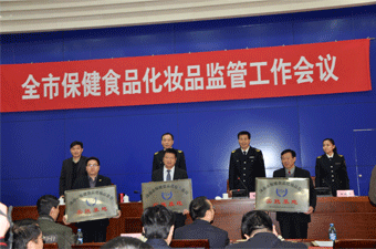 2013年3月13日,由濟(ji)南(nan)市食(shi)(shi)品(pin)(pin)藥(yao)品(pin)(pin)監(jian)(jian)督管(guan)理局(ju)主辦的(de)“濟(ji)南(nan)市保(bao)健(jian)食(shi)(shi)品(pin)(pin)化(hua)妝品(pin)(pin)監(jian)(jian)管(guan)工作會(hui)議(yi)(yi)”在龍奧(ao)大廈(sha)隆重召開,來自濟(ji)南(nan)市及各縣(xian)(市)區監(jian)(jian)管(guan)系統一線的(de)執法工作人員參加了(le)此次(ci)會(hui)議(yi)(yi)。會(hui)議(yi)(yi)由濟(ji)南(nan)市食(shi)(shi)品(pin)(pin)藥(yao)品(pin)(pin)監(jian)(jian)督管(guan)理局(ju)保(bao)化(hua)處(chu)陳廣銀處(chu)長(chang)(chang)主持,濟(ji)南(nan)市食(shi)(shi)品(pin)(pin)藥(yao)品(pin)(pin)監(jian)(jian)督管(guan)理局(ju)衣光軍(jun)副局(ju)長(chang)(chang)、保(bao)化(hua)處(chu)杜曉(xiao)偉科長(chang)(chang)、保(bao)化(hua)處(chu)朱銀和科長(chang)(chang)出席會(hui)議(yi)(yi),我公(gong)司(si)和山東天地健(jian)生物工程有限公(gong)司(si)、山東福瑞達(da)生物工程有限公(gong)司(si)參加了(le)此次(ci)會(hui)議(yi)(yi),并上臺(tai)領取(qu)了(le)“濟(ji)南(nan)市保(bao)健(jian)食(shi)(shi)品(pin)(pin)化(hua)妝品(pin)(pin)監(jian)(jian)管(guan)實踐基地”的(de)標牌。