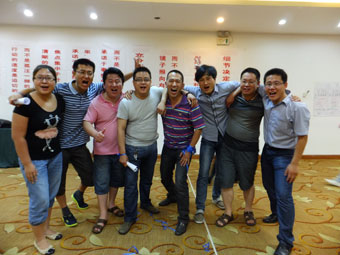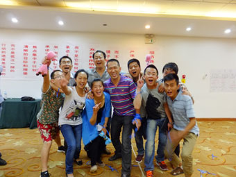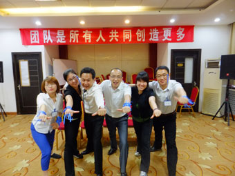 隨后(hou),在(zai)大(da)(da)家熱切的(de)期盼中(zhong)迎來了第(di)一(yi)個團隊(dui)游戲(xi)。這(zhe)是一(yi)個看似非常簡(jian)單的(de)游戲(xi),開始之前(qian)每(mei)(mei)一(yi)位隊(dui)員都充滿了必(bi)勝的(de)信念,大(da)(da)家相約(yue)要(yao)(yao)以(yi)最短的(de)時間完成(cheng)任務。在(zai)游戲(xi)進行中(zhong),大(da)(da)家才突然意識到,看似小小的(de)道具并不(bu)像(xiang)他們想象(xiang)得那么(me)容(rong)易駕馭,本意是向下(xia),它卻偏(pian)(pian)偏(pian)(pian)朝上,一(yi)個預(yu)計(ji)在(zai)20-30秒(miao)就可以(yi)完成(cheng)的(de)游戲(xi),每(mei)(mei)隊(dui)卻花費了近20分鐘的(de)時間,大(da)(da)大(da)(da)出乎意料(liao)之外。這(zhe)時候大(da)(da)家才明白(bai):“放(fang)下(xia)”原來是這(zhe)么(me)難。其(qi)實很多時候我們心里想的(de)是我們要(yao)(yao)拿(na)起什(shen)么(me),卻很少思考我們需要(yao)(yao)放(fang)下(xia)什(shen)么(me)?放(fang)下(xia)榮耀、放(fang)下(xia)經(jing)驗、放(fang)下(xia)負擔、放(fang)下(xia)一(yi)切阻止我們前(qian)進的(de)障礙,只(zhi)有先放(fang)下(xia)才會有機會拾起。