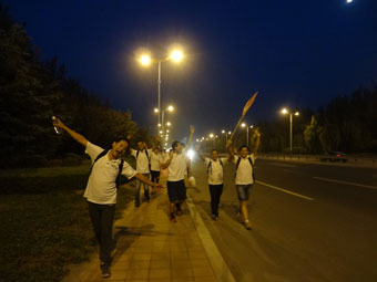 夜晚的(de)(de)秋風,帶(dai)著(zhu)一(yi)(yi)絲(si)絲(si)的(de)(de)涼意(yi),寬廣的(de)(de)馬路(lu),自東向西一(yi)(yi)路(lu)延伸,每個人(ren)的(de)(de)臉上都充滿了興奮(fen)和激動,以及對完成目(mu)標的(de)(de)自信。各(ge)小(xiao)(xiao)組(zu)在隊(dui)(dui)長的(de)(de)帶(dai)領下,沿著(zhu)經十路(lu)一(yi)(yi)路(lu)向西,途中(zhong),大(da)家(jia)(jia)恣意(yi)高(gao)歌(ge)、暢談,相互(hu)(hu)鼓勵著(zhu),相互(hu)(hu)支(zhi)持著(zhu),整個隊(dui)(dui)伍呈現出(chu)一(yi)(yi)派激情昂揚、其(qi)樂融融的(de)(de)美(mei)好氛(fen)圍。約兩(liang)個小(xiao)(xiao)時后,各(ge)小(xiao)(xiao)組(zu)陸續(xu)到達第一(yi)(yi)集結點(dian)——孫村新(xin)區(qu),后勤支(zhi)持人(ren)員為(wei)大(da)家(jia)(jia)準備(bei)了脈(mo)動飲料,隨風飄揚的(de)(de)“突破旅”大(da)旗點(dian)燃了大(da)家(jia)(jia)的(de)(de)激情。