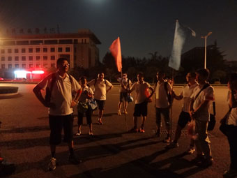 9月16日(ri)下午17:30,參加(jia)此次(ci)(ci)拉練的(de)(de)全體成員(yuan)統一著裝,齊聚(ju)在(zai)生產(chan)基地會議室里(li)參加(jia)了(le)動員(yuan)大(da)(da)會。培訓部經理傅龍先生帶領大(da)(da)家進(jin)行(xing)(xing)了(le)定(ding)向,就(jiu)拉練人員(yuan)分(fen)(fen)組(zu)、行(xing)(xing)程規則、注意事項等進(jin)行(xing)(xing)了(le)詳(xiang)盡細致的(de)(de)介紹。全體人員(yuan)按照動員(yuan)要求分(fen)(fen)為三個小組(zu),隨后,各小組(zu)人員(yuan)用了(le)約10分(fen)(fen)鐘的(de)(de)時間選隊(dui)(dui)長(chang)、起(qi)隊(dui)(dui)名、隊(dui)(dui)呼,畫(hua)隊(dui)(dui)旗。18:10,全體人員(yuan)統一乘坐大(da)(da)巴(ba)車到達徒步(bu)的(de)(de)起(qi)點(dian)——山東財(cai)經大(da)(da)學。18:30分(fen)(fen),三個小組(zu)同時邁出了(le)這次(ci)(ci)征程的(de)(de)第(di)一步(bu),拉練活動正式開(kai)始。