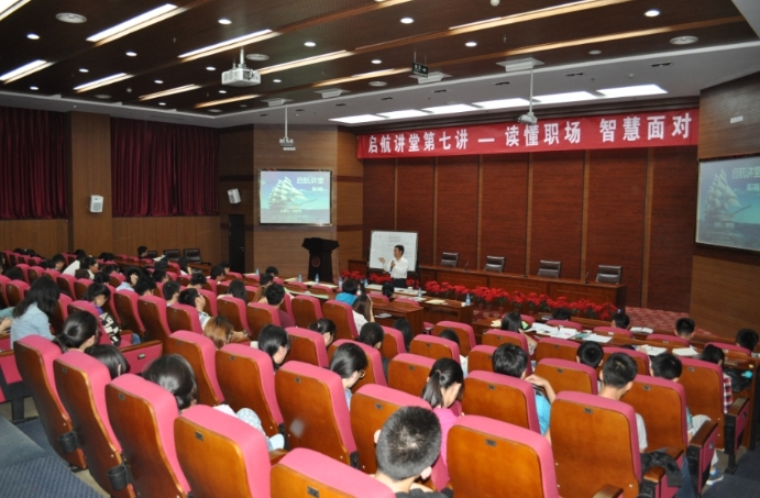 2014年5月14日,晩7:00~9:30,在山東大學中心校區氣派的知新樓思源報告廳內,在就業指導中心王紀磊副主任、生命科學院韓春岫副書記、博導宋欣教授的見證下,二百余名學子,靜靜聆聽老校友湯傳忠先生作<讀懂職場,智慧應對>的專題報告會。二個小時的時間層層剝繭,深入淺出,其實,壓力沒有那么大,困難沒有那么多,人生是一場馬拉松,也不必那么急,讀懂了職場,完全可以從容面對、智慧應對。未來的路很長,走好人生的關鍵幾步,可以快樂工作,輕松生活,心燈點亮,夢想高飛,成人達己,游刃有余。