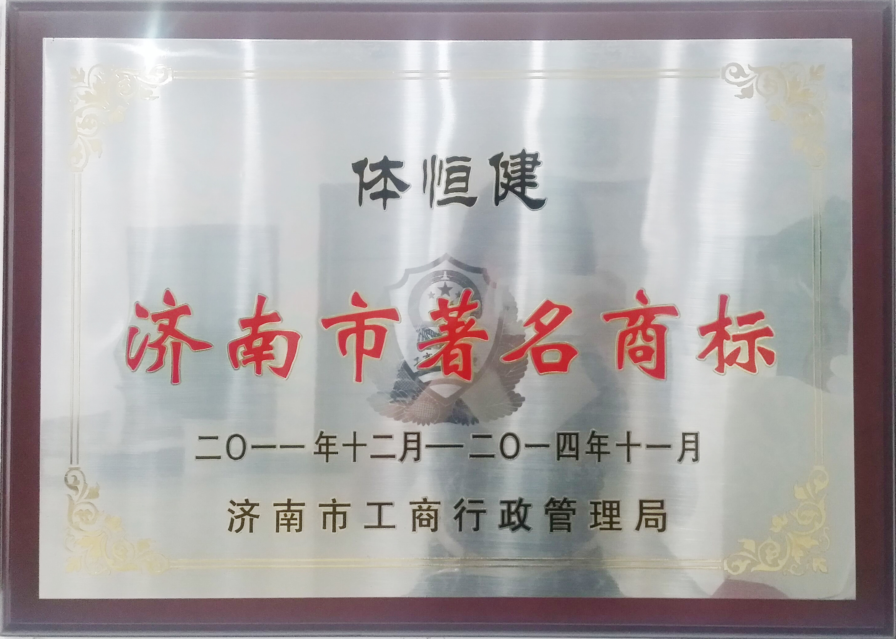 2008年,“體(ti)恒(heng)健”被(bei)濟(ji)南市(shi)工商(shang)局評為“濟(ji)南市(shi)著名商(shang)標”