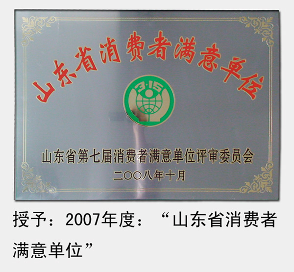 2008年(nian),被山東省消(xiao)費者(zhe)協會評為“第七屆山東省消(xiao)費者(zhe)滿意單位”