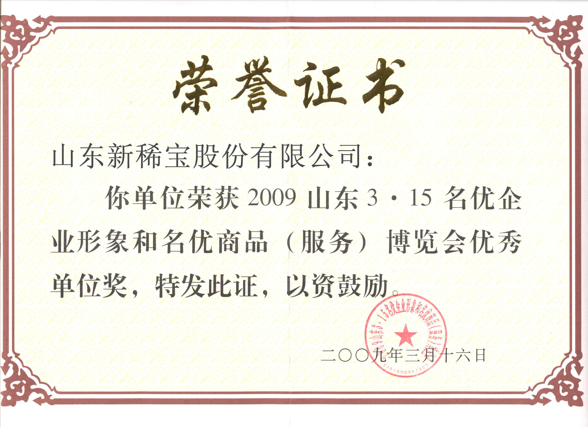 2004~2011年多次被評為“山東3-15名優商品(服務)和企業形象博覽會優秀獎”