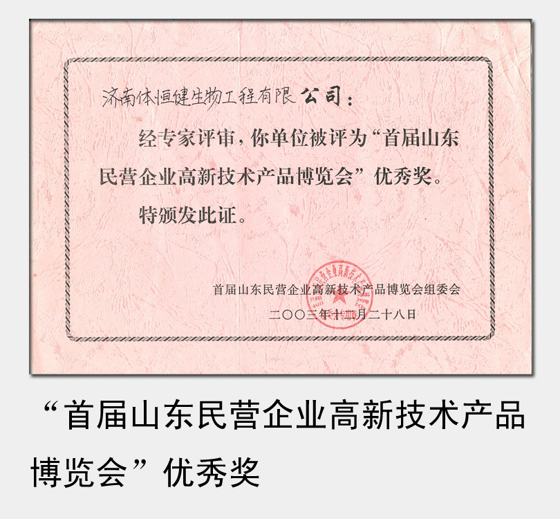 2003年被評為“首屆山東民營企業高新技術產品博覽會”優秀獎