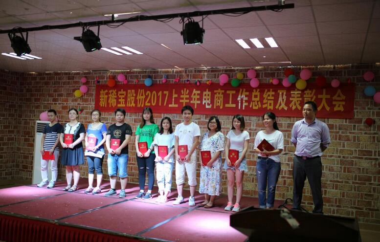 緊張激烈的競技賽之后,新稀寶股 份(fen)2017上(shang)半(ban)年(nian)電(dian)商(shang)、商(shang)網(wang)工作總結及表彰大會(hui)17:30開(kai)幕(mu)。會(hui)議剛開(kai)始,陳文(wen)歡經理(li)(li)做(zuo)了簡單的(de)(de)(de)人(ren)事任(ren)免宣布(bu),隨(sui)著公(gong)(gong)司(si)不斷發展(zhan)(zhan)壯大,機構調整也(ye)越(yue)來(lai)(lai)越(yue) 合理(li)(li),人(ren)才的(de)(de)(de)選拔(ba),布(bu)局(ju)的(de)(de)(de)完善,預示著企業的(de)(de)(de)發展(zhan)(zhan)將愈來(lai)(lai)愈好(hao)、愈來(lai)(lai)愈快。緊接(jie)著是張(zhang)秋峰經理(li)(li)發表講話(hua),從辦(ban)公(gong)(gong)地點的(de)(de)(de)愈加緊湊、商(shang)網(wang)質的(de)(de)(de)飛躍,電(dian)商(shang)的(de)(de)(de)持續發 展(zhan)(zhan)說起,感慨南寧分公(gong)(gong)司(si)的(de)(de)(de)發展(zhan)(zhan)之(zhi)迅速。不但健康行業發展(zhan)(zhan)快速,孕嬰事業部(bu)(bu)也(ye)在快速增(zeng)長(chang)中(zhong),外部(bu)(bu)競爭激烈,內部(bu)(bu)競爭亦不容(rong)忽視(shi)。電(dian)商(shang)、商(shang)網(wang)下半(ban)年(nian)需心往一(yi)處 想(xiang),勁往一(yi)處使,爭取早日(ri)實現跨越(yue)式的(de)(de)(de)增(zeng)長(chang)。