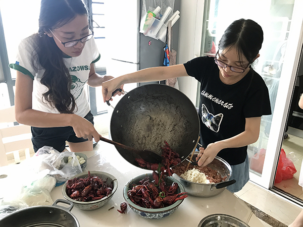 大廚們陸續到場,不(bu)一會廚房內就(jiu)(jiu)已經熱(re)火朝天,洗菜(cai)、切菜(cai),忙得不(bu)亦樂乎。很快(kuai)的(de),第一道熱(re)菜(cai)就(jiu)(jiu)下鍋(guo)了,第一道熱(re)菜(cai)是小(xiao)(xiao)(xiao)云做的(de)十三(san)香(xiang)小(xiao)(xiao)(xiao)龍蝦(xia),只見她(ta)用刷子 把小(xiao)(xiao)(xiao)龍蝦(xia)仔仔細(xi)細(xi)刷了一遍,最(zui)激動人心(xin)的(de)就(jiu)(jiu)是下鍋(guo)的(de)那一刻了,爆香(xiang)蔥(cong)姜(jiang)后再把小(xiao)(xiao)(xiao)龍蝦(xia)倒進(jin)鍋(guo)里,頓時發出“呲啦(la)”的(de)聲音,快(kuai)速翻炒小(xiao)(xiao)(xiao)龍蝦(xia),沒(mei)過多久(jiu)就(jiu)(jiu)陣陣飄 香(xiang),小(xiao)(xiao)(xiao)龍蝦(xia)的(de)香(xiang)味讓同事們的(de)饞(chan)蟲(chong)都被勾出來了。