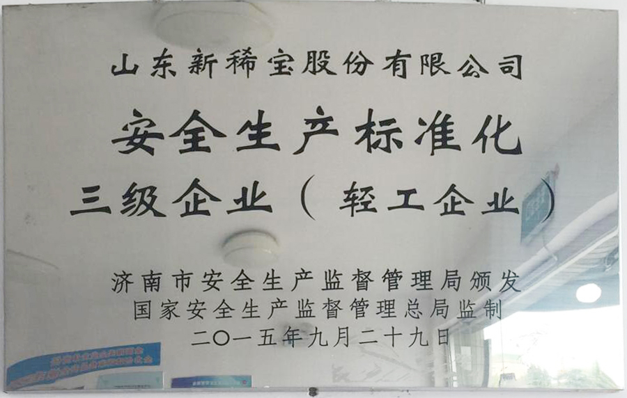 2015年,被濟南市安全生產監督管理局評定為“安全生產標準化三級企業”