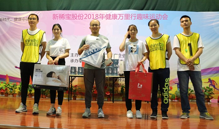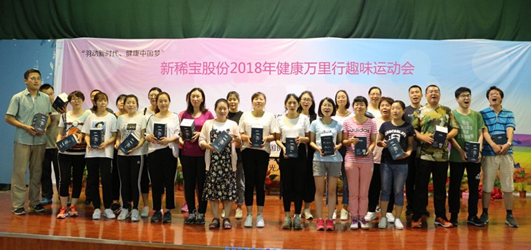 2018年6月9日,新稀寶股份2018年健康萬里行之趣味運動會在美視弗雷斯羽毛球場歡樂開賽。本次運動會屬于后勤職能部門2018年健康萬里行系列活動之一,后勤各部門所有員工及模式研發部的部分同事合計80余人參加了本次運動會。所有參賽部門共分為三個隊伍,分別起名為“我們不一樣隊“、“財務保障隊”和“稀寶隊”。