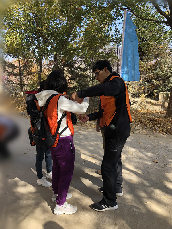 遠離了城市的喧囂,暫別了緊張的工作,將身心融入青山碧水。新稀寶的6個小隊在九如山的木棧道上健步而行,顏色鮮亮的統一隊服,在人群中尤為亮眼。本次活動以登山為主,穿插各項團隊游戲,根據培訓導師在APP中的(de)提示指令,在規定時間(jian)內完成相應(ying)任務,并(bing)獲得積(ji)分,最終積(ji)分第一(yi)的(de)團隊贏得勝(sheng)利。