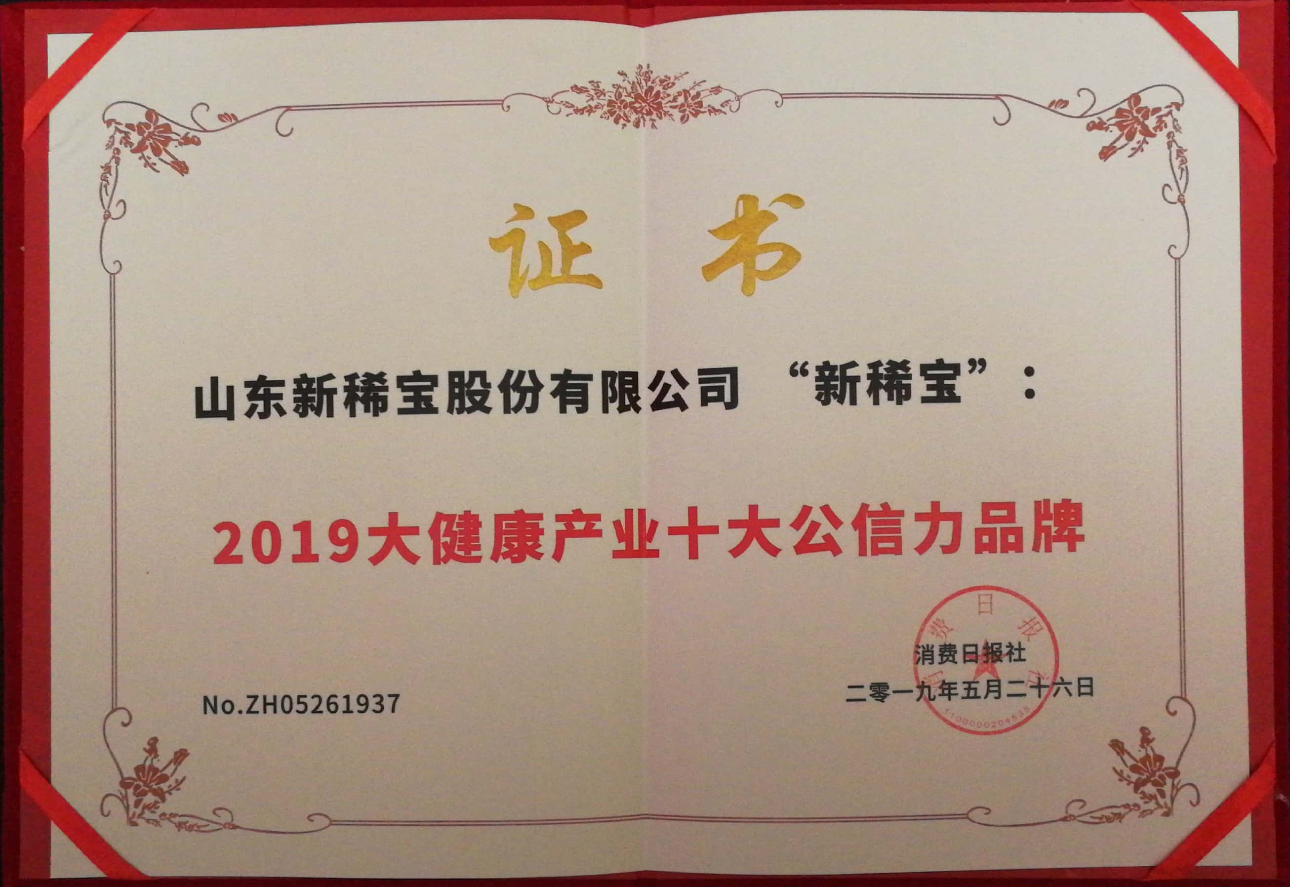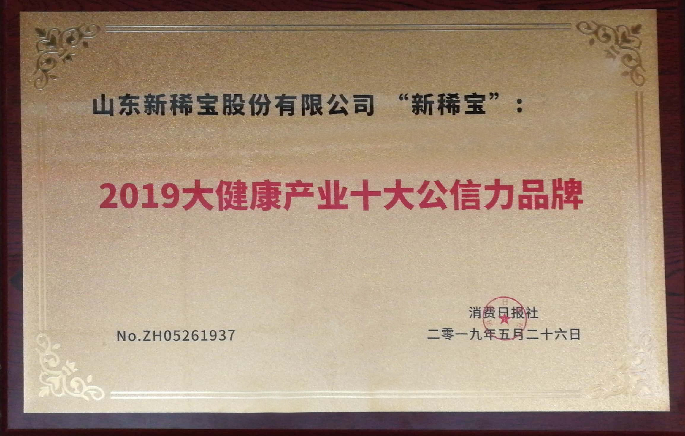 “新稀寶”被消費日報社評為“2019大健康產業十大公信力品牌”