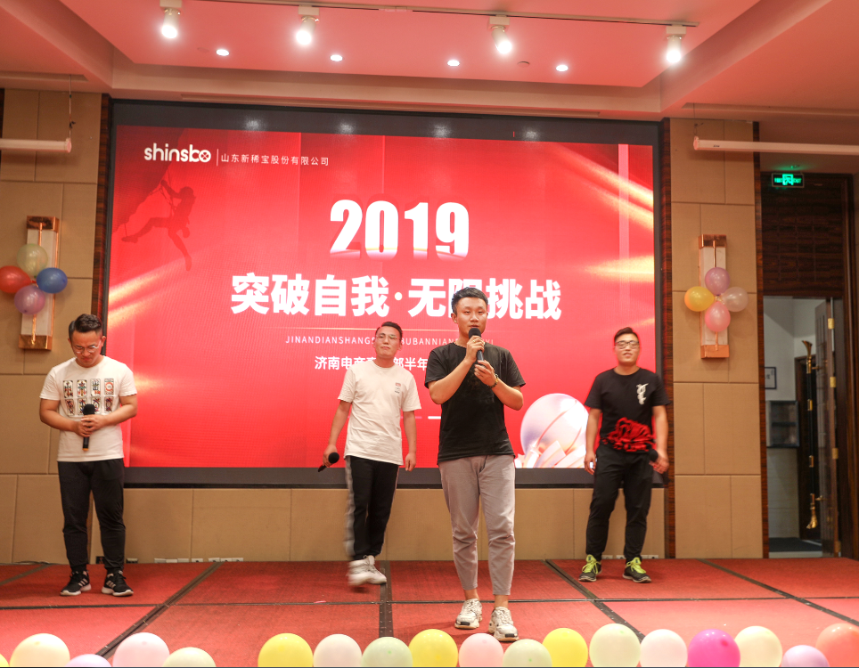 會議第三項是榮譽表彰頒獎環節。濟南電商在2019年上半年能夠蓬勃發展,離不開所有新稀寶人的辛勤付出,本次大會陸續頒發了半年度全勤、半年度優秀進步、優秀新人、優秀員工、優秀儲備干部等多個獎項。最后頒發了本次會議的重量級獎項——突破獎,2019年6月濟南主品部突破目標550萬,總銷量達到582萬,孕嬰電商部突破目標200萬,總銷量達到214.6萬,兩個部門創造歷史銷量最高記錄,這不僅僅是濟南主品部、孕嬰電商部的一次突破,更是線上平臺的一次突破!