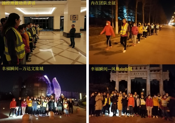 夜晚是讓人可以沉靜的時間,行走可以讓人與內在更好的連接。慢慢降臨的春夜里,新稀寶的夜行大軍已經整裝待發,在湯經理激情澎湃的動員會之后,浩浩蕩蕩的隊伍出發了,沉靜的夜晚靜悄悄,整個世界都朦朦朧朧的,行走中的力量和能量仿佛一盞明燈,照亮了前進的道路。
