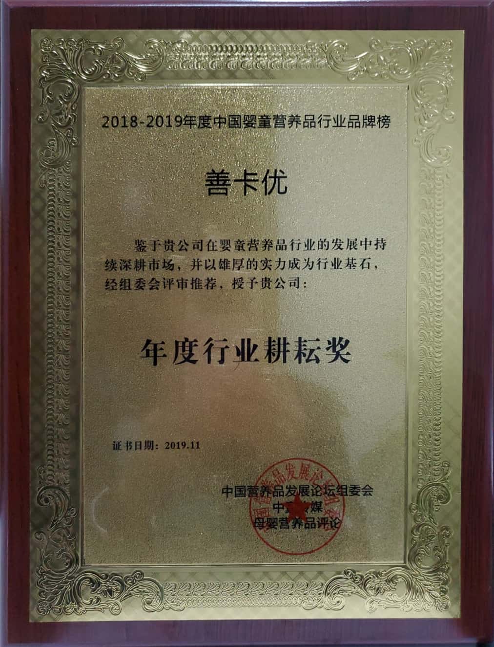善卡優被(bei)中國營養品發展論壇組(zu)委會評為(wei)“年度行業耕耘(yun)獎”
