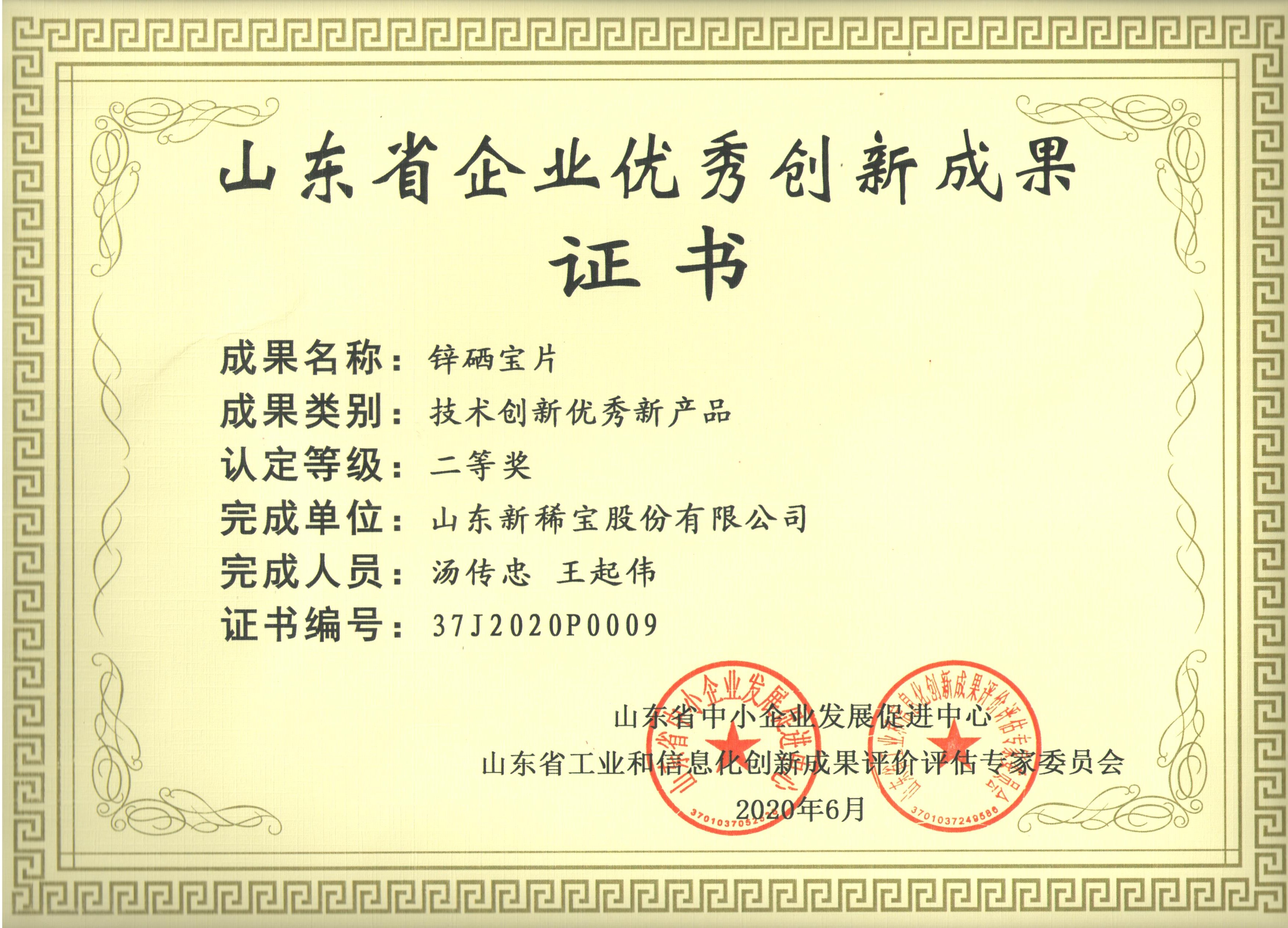 鋅硒(xi)寶片獲得技術創新優秀新產品二(er)等獎