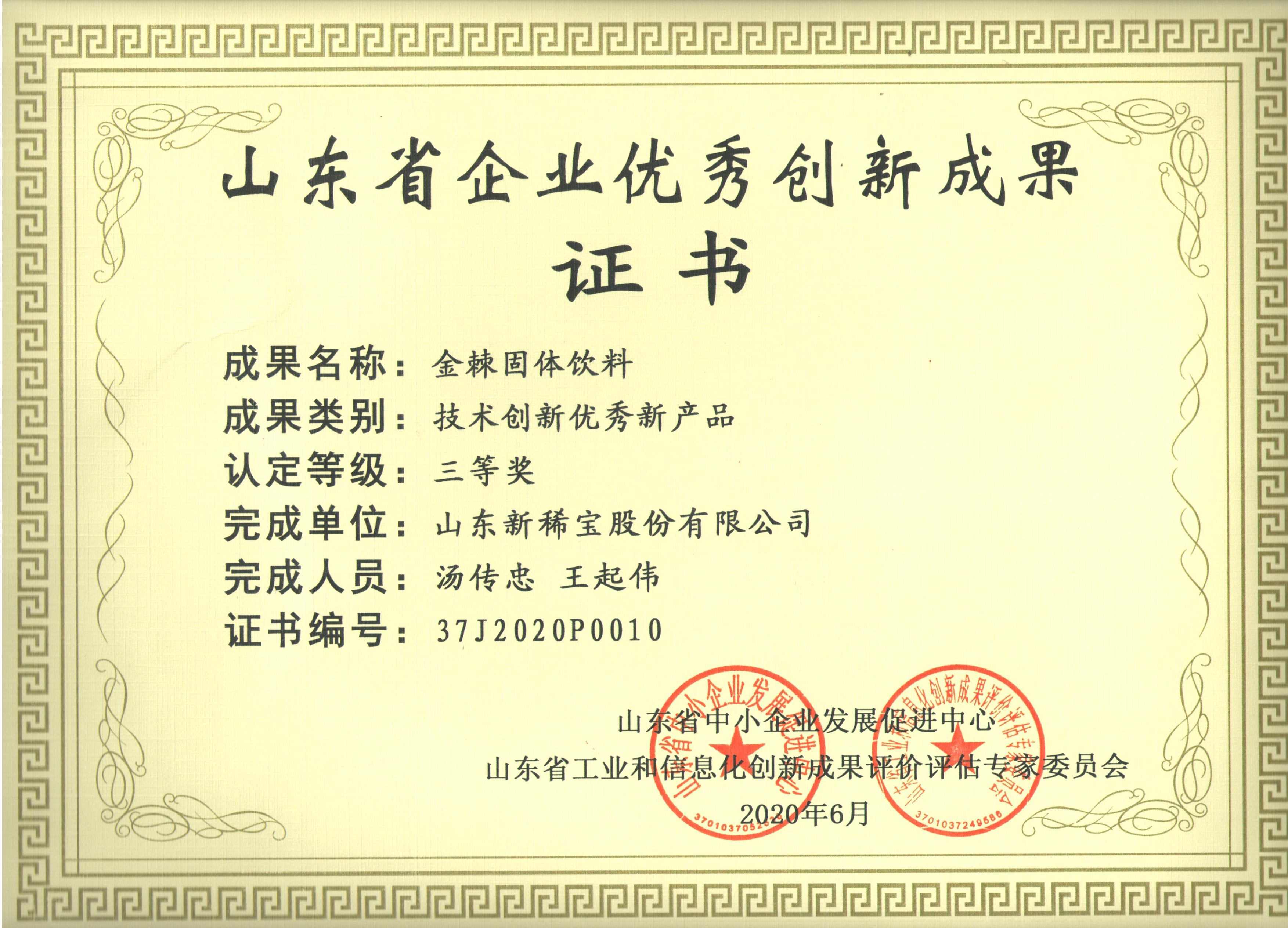 金棘固體飲料獲得技術創新優秀(xiu)新產(chan)品三等獎