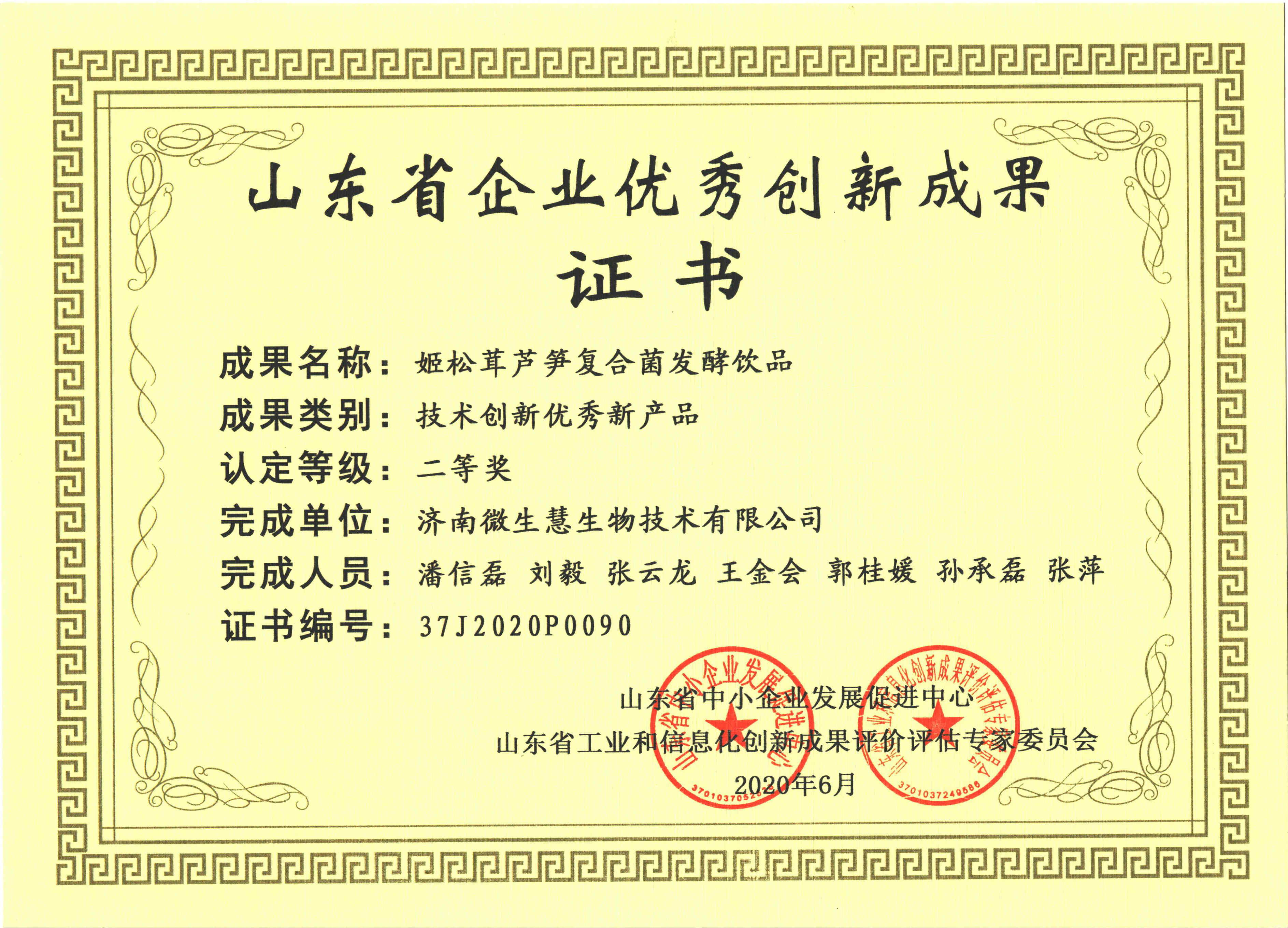 姬松茸蘆筍復(fu)合菌發(fa)酵飲品獲(huo)得技術創新(xin)優秀新(xin)產品二(er)等獎